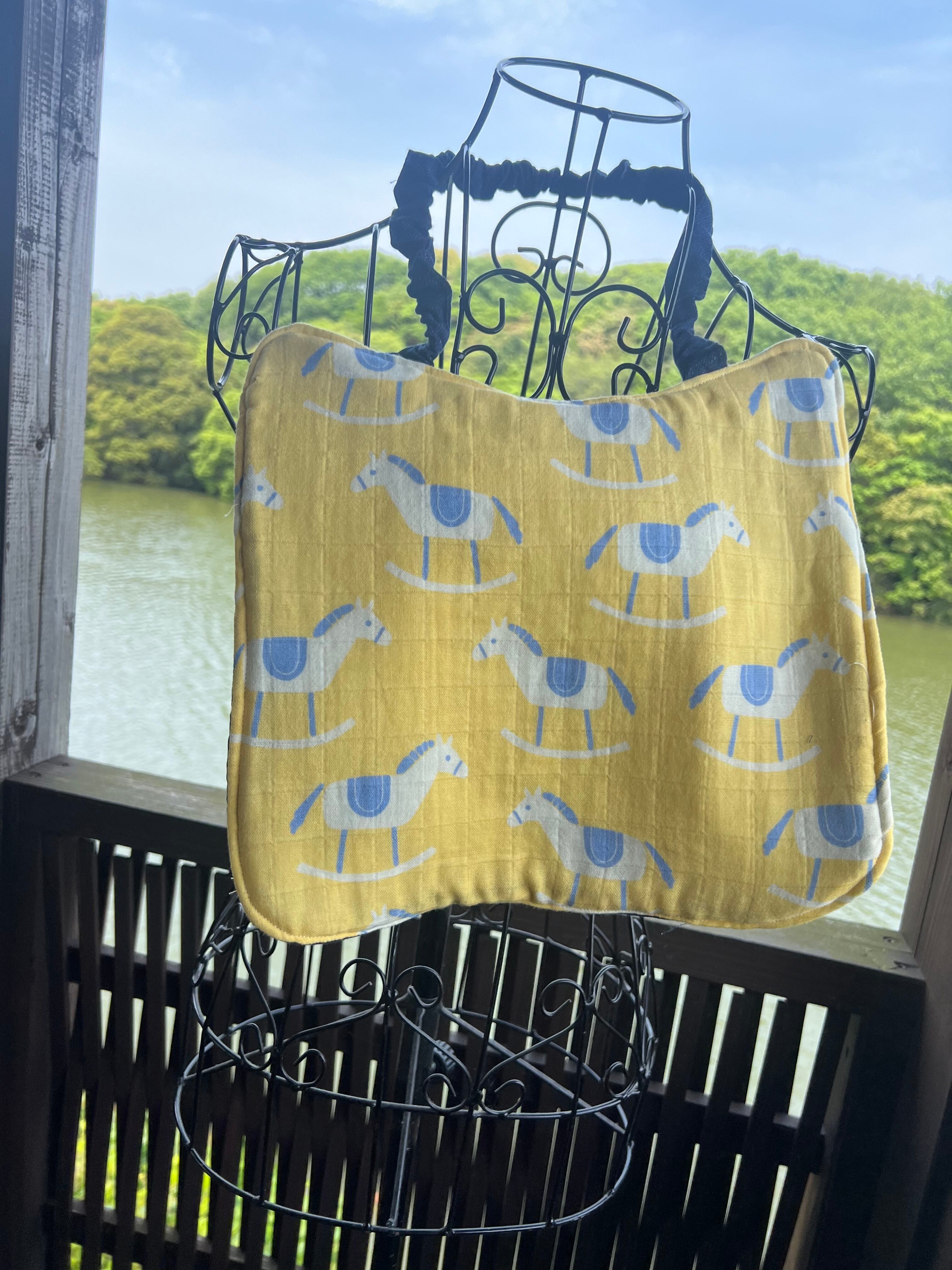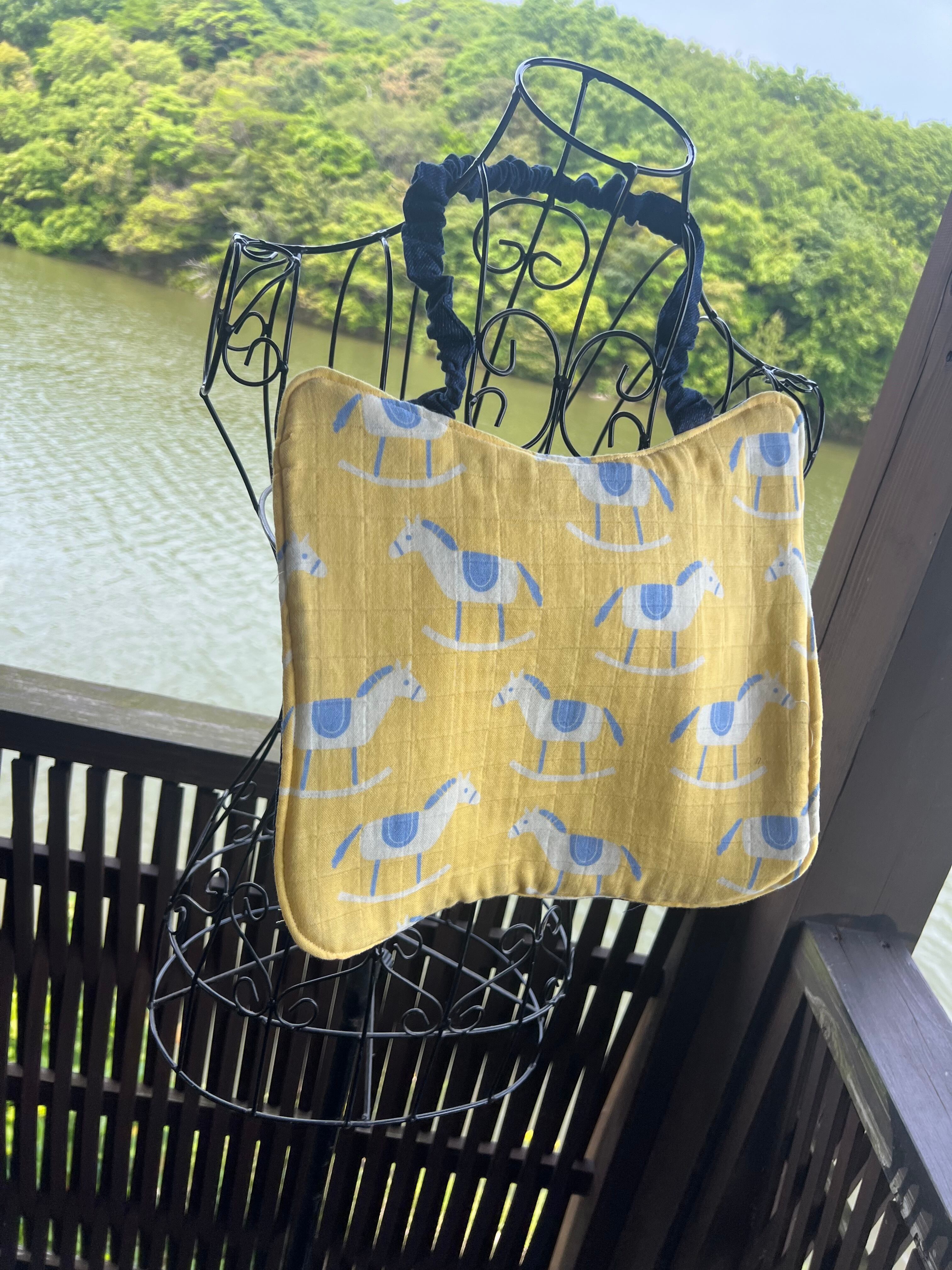 ●ガーゼの中にキルト芯がはいっているためふわっとほどよく厚みがあり、よだれだらけでママやパパの服がよごれる心配なし