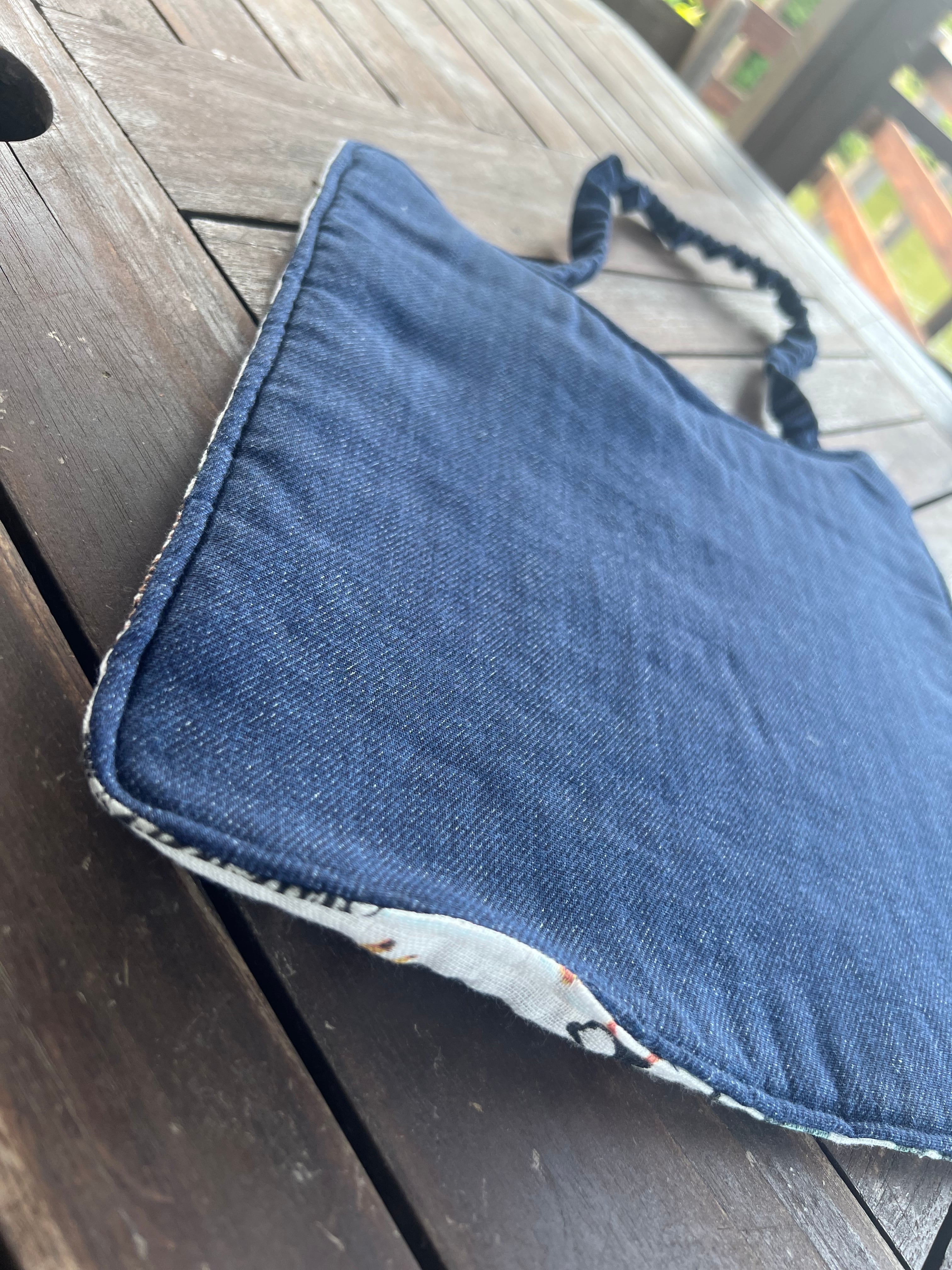 ●赤ちゃんを抱っこしながらでも 装着しやすいように スタイはスナップではなく 紐にゴムを入れて一体化にしています。使わない時は ベビーカーの頭元にやよだれふきなどにもご使用頂けます。