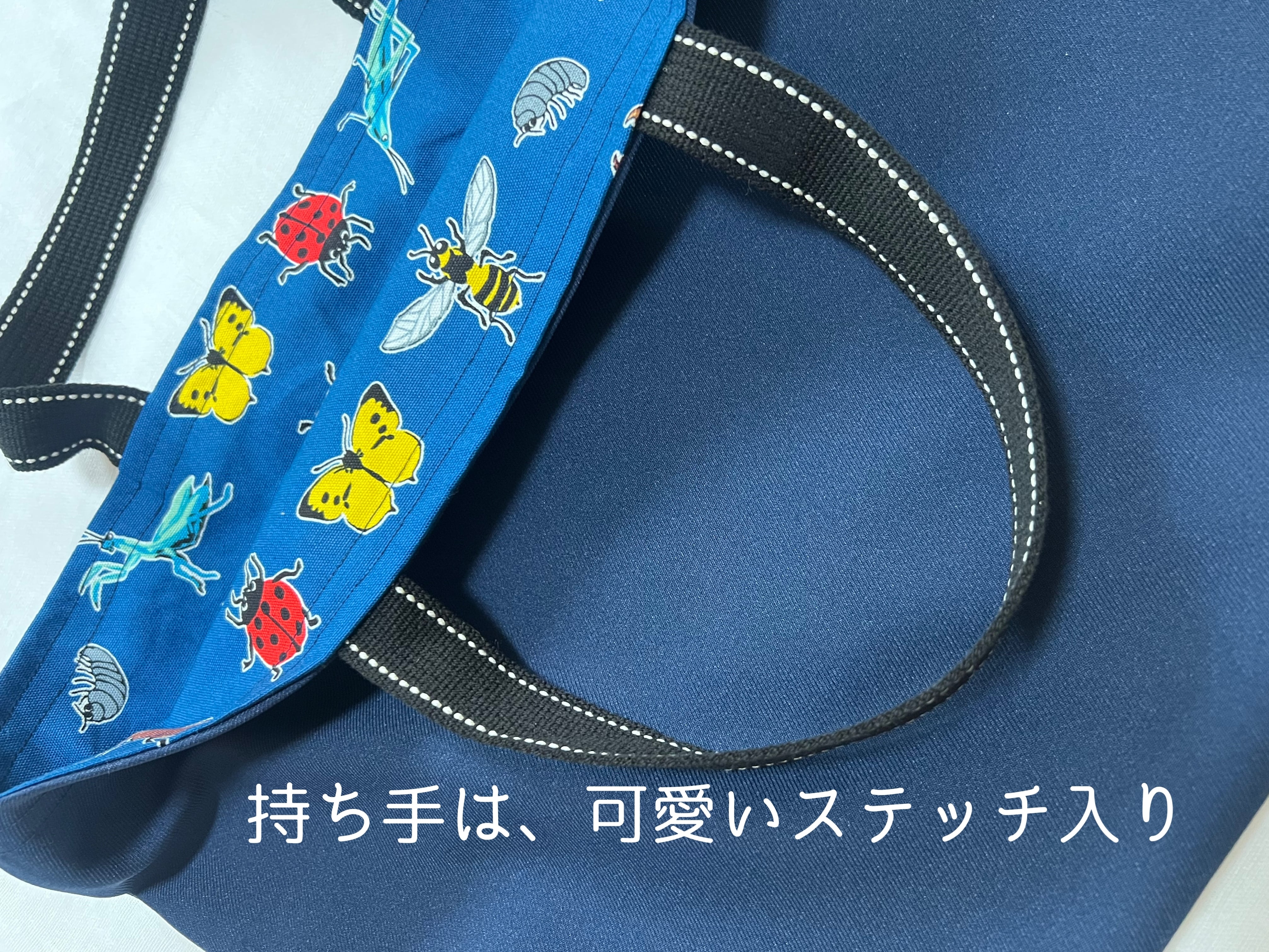 ◉レッスンバックはリバーシブルでご使用可能。紺色無地で用途に応じてオリジナルバックに。